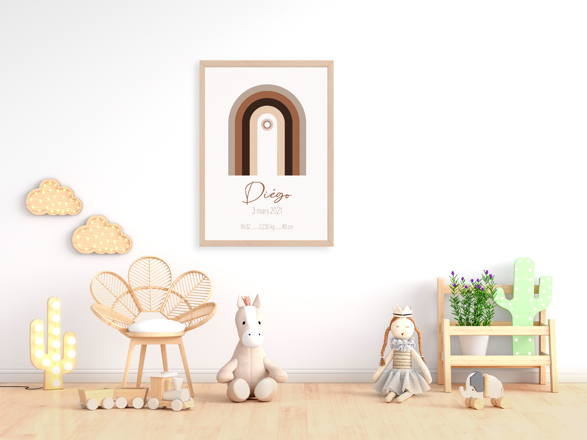 Affiche à personnaliser au nom de votre enfant et sa date de naissance ou à offrir.