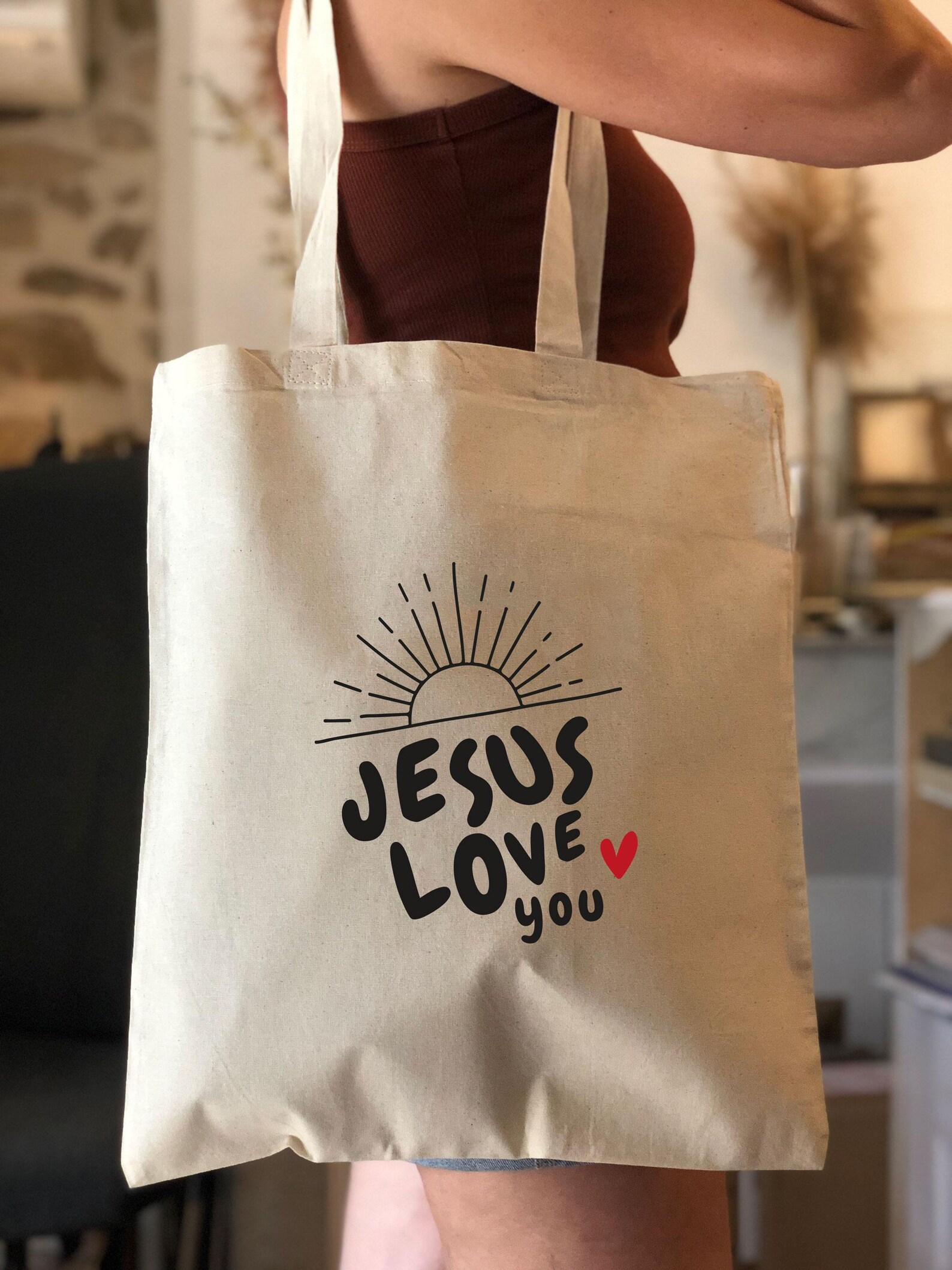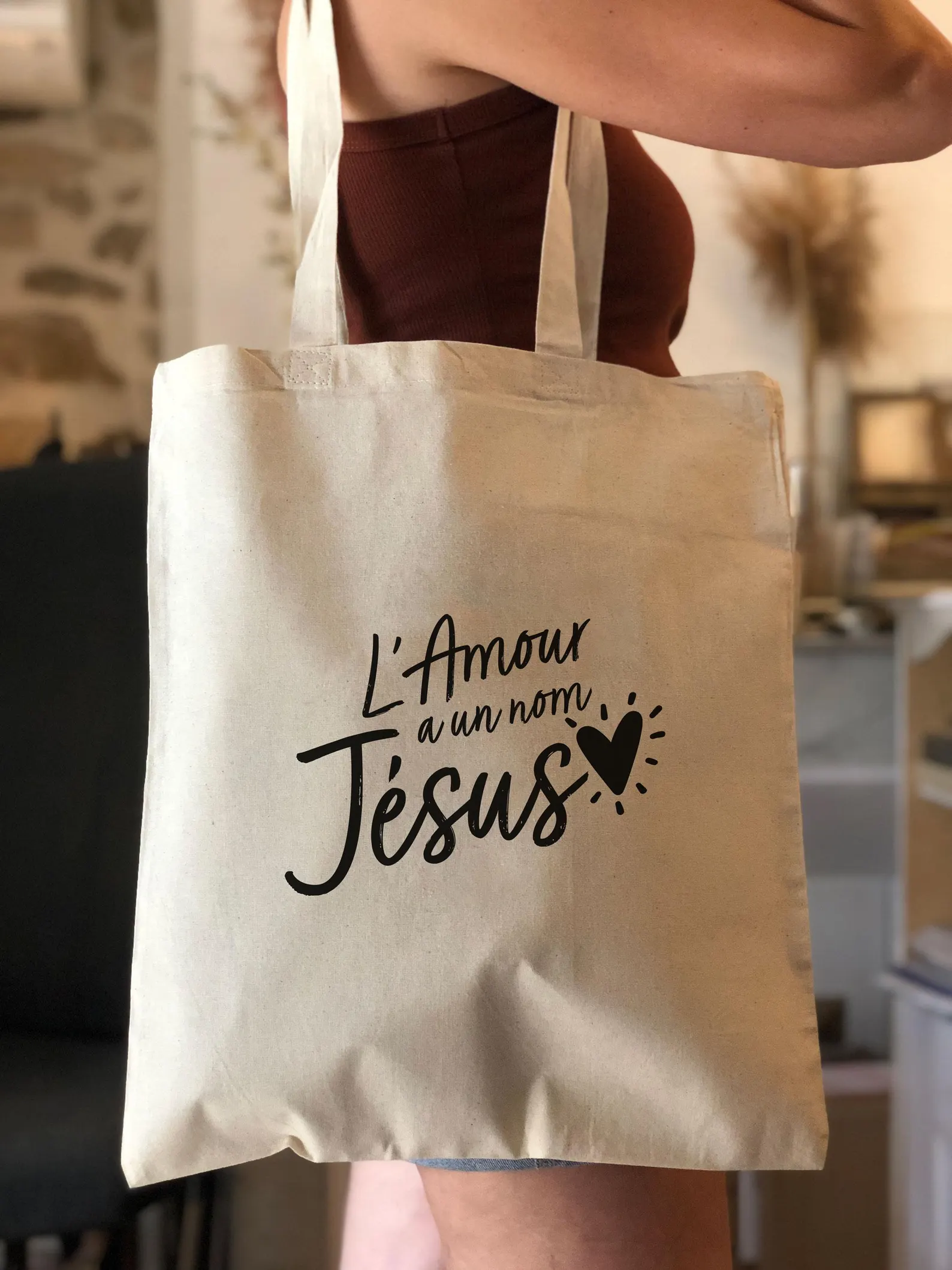 Affirmez votre foi avec ce magnifique tote bag inspirant ! Avec l’inscription “L’Amour a un Nom : Jésus” , “Lève-toi et brille” “Jesus love you”, ce sac est bien plus qu’un accessoire : c’est un témoignage puissant de l’amour inconditionnel du Christ.